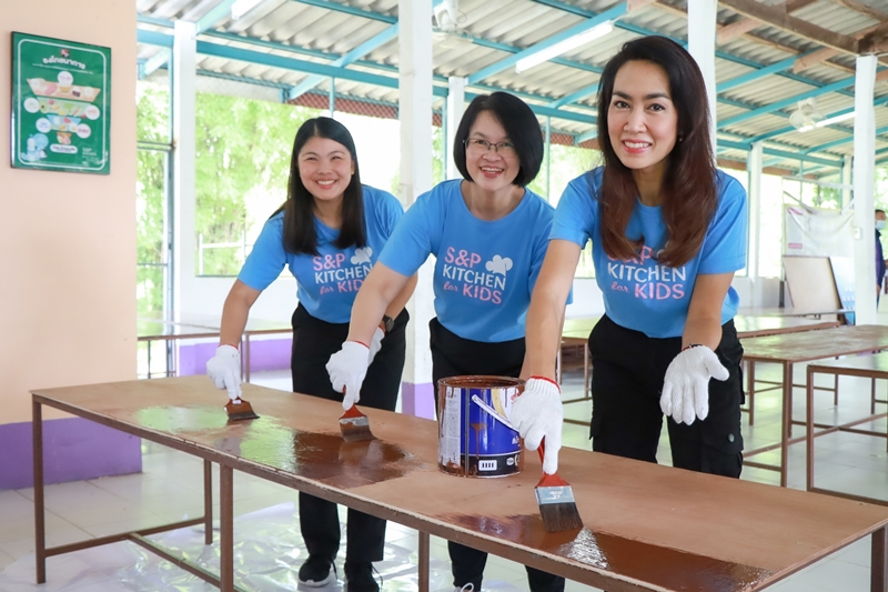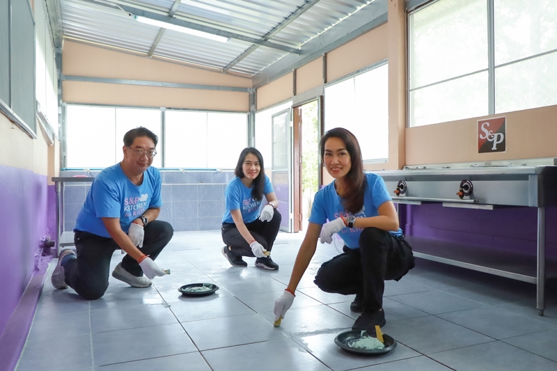 โดยมีผู้บริหารและพนักงานร่วมปรับปรุงโรงครัวให้ถูกสุขลักษณะ รวมถึงมีผู้เชี่ยวชาญด้านโภชนาการมาอบรมให้ความรู้แก่แม่ครัว นักเรียน และบุคลากรของโรงเรียน เพื่อให้สามารถประกอบอาหารให้แก่นักเรียนได้อย่างถูกสุขอนามัย สะอาด และปลอดภัย ส่งเสริมการมีสุขภาพที่ดีอย่างยั่งยืน นอกจากนี้บริษัทฯ ยังมอบอุปกรณ์เครื่องใช้สำหรับประกอบอาหาร อาทิ เตา 3 หัว จำนวน 1 ตัว โต๊ะเตรียมอาหาร จำนวน 2 ตัว รวมทั้งยังส่งเสริมโครงการเกษตรยั่งยืนโดยมอบพันธุ์ปลาดุกและพันธุ์ปลาทับทิม จำนวน 3,000 ตัว พร้อมอาหารปลา จำนวน 15 กระสอบ เพื่อเป็นแหล่งวัตถุดิบที่สด สะอาด และปลอดภัย พร้อมกันนี้ได้ทำพิธีส่งมอบโรงครัว โดยผู้บริหารและพนักงานร่วมปรุงอาหารกลางวันเลี้ยงน้องๆ พร้อมมอบขนม เอส แอนด์ พี ให้อิ่มอร่อยอีกด้วย”