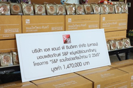 บริษัท เอส แอนด์ พี ซินดิเคท จำกัด (มหาชน) นำโดย คุณมณีสุดา ศิลาอ่อน ประธานเจ้าหน้าที่สำนักพัฒนาความยั่งยืนและสื่อสารองค์กร มอบผลิตภัณฑ์ขนมไหว้พระจันทร์ และผลิตภัณฑ์คุกกี้รสช็อกโกแลตลาวาเดลี่ มูลค่ารวม 2,758,395 บาท แด่กองบัญชาการกองทัพเรือ ในนามหลักสูตรการป้องกันราชอาณาจักร (วปอ.) รุ่นที่ 65 และมูลนิธิร่วมกตัญญู ระหว่างวันที่ 21-25 ต.ค. 2565 เพื่อบรรเทาความเดือดร้อนแก่ประชาชนผู้ประสบอุทกภัยในพื้นที่จังหวัดอุบลราชธานี ระยอง สิงห์บุรี อ่างทอง อยุธยา และชุมชนริมแม่น้ำเจ้าพระยา ภายใต้โครงการ “S&P รวมใจช่วยภัยน้ำท่วม ปี 2565