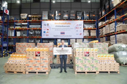 การส่งมอบผลิตภัณฑ์ในครั้งนี้ได้รับการสนับสนุนด้านการขนส่ง โดย คุณนพพล ชูกลิ่น ประธานเจ้าหน้าที่บริหาร บริษัท รีเทล บิซิเนส โซลูชั่นส์ จำกัด (ที่ 3 จากซ้าย) เพื่อกระจายผลิตภัณฑ์ไปยังทหารและประชาชนในศูนย์พักพิงได้อย่างทั่วถึง เมื่อวันที่ 30 กรกฎาคม 2568