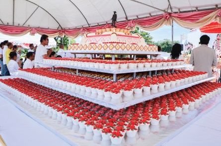 ในปีนี้ได้ออกแบบเค้กสูงทั้งหมด 5 ชั้น โดยชั้นบนเป็นเค้กขนาด 152 ปอนด์ และมีพระบรมรูปหล่อองค์พระบาทสมเด็จพระจุลจอมเกล้าเจ้าอยู่หัววางประดิษฐานอยู่ด้านบนเค้ก ส่วนชั้นล่างจัดทำเป็นคัพเค้กดอกกุหลาบโทนสีชมพู สีแดง และสีเหลือง จำนวน 2,210 ถ้วย ขนาดเค้ก 368 ปอนด์ โดยฐานเค้กมีขนาด 3x3 เมตร ใช้ช่างแต่งหน้าเค้กจำนวน 10 คน โดยมี คุณมณีสุดา ศิลาอ่อน ประธานเจ้าหน้าที่สำนักพัฒนาความยั่งยืนและสื่อสาร บริษัท เอส แอนด์ พี ซินดิเคท จำกัด (มหาชน) ได้เข้าร่วมพิธีบวงสรวง