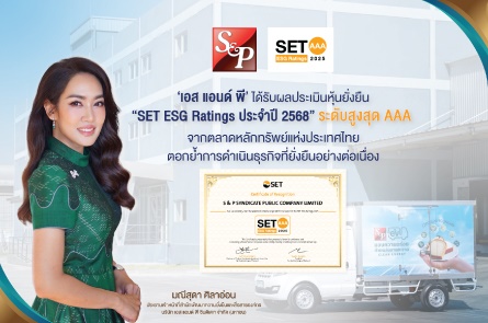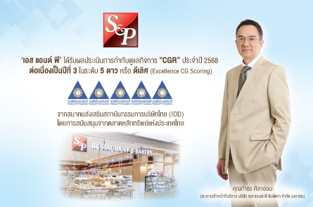 ‘เอส แอนด์ พี’ ได้รับผลประเมินการกำกับดูแลกิจการ บริษัทจดทะเบียนไทย ประจำปี 2568 (CGR) ในระดับ 5 ดาว ต่อเนื่องเป็นปีที่ 3