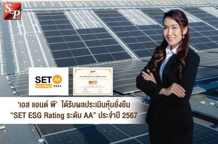 ‘เอส แอนด์ พี’ ได้รับผลประเมินหุ้นยั่งยืน “SET ESG Rating ระดับ AA” ประจำปี 2567 มุ่งมั่นดำเนินธุรกิจอย่างยั่งยืนตามแนวทาง ESG อย่างต่อเนื่อง