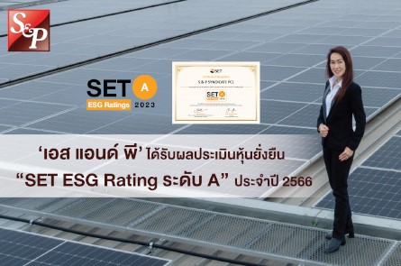 ‘เอส แอนด์ พี’ ได้รับผลประเมินหุ้นยั่งยืน “SET ESG Rating ระดับ A” ประจำปี 2566