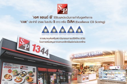 ‘เอส แอนด์ พี’ ได้รับผลประเมินการกำกับดูแลกิจการ บริษัทจดทะเบียนไทย ประจำปี 2566 (CGR) ในระดับ 5 ดาว